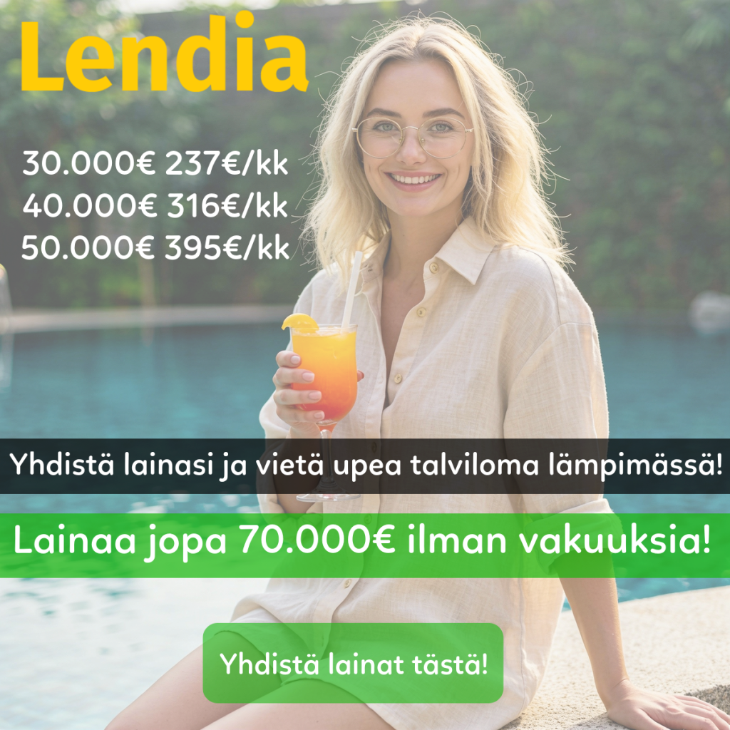 Lendia on erikoistunut isojen yhdistelylainojen kilpailutukseen! Lendian kautta on erityisen helppoa saada 20.000 – 70.000€ kokoisia yhdistelylainoja! Lendialla on kymmeniä tuhansia tyytyväisiä asiakkaita Suomessa!
